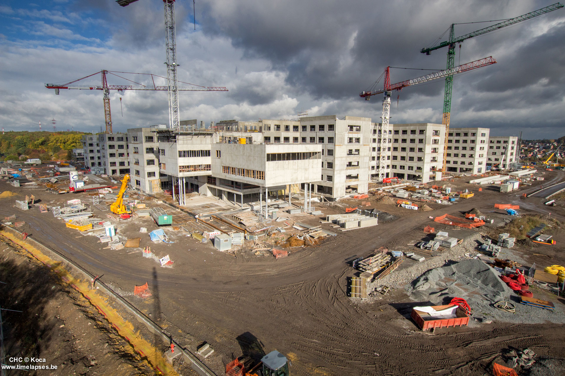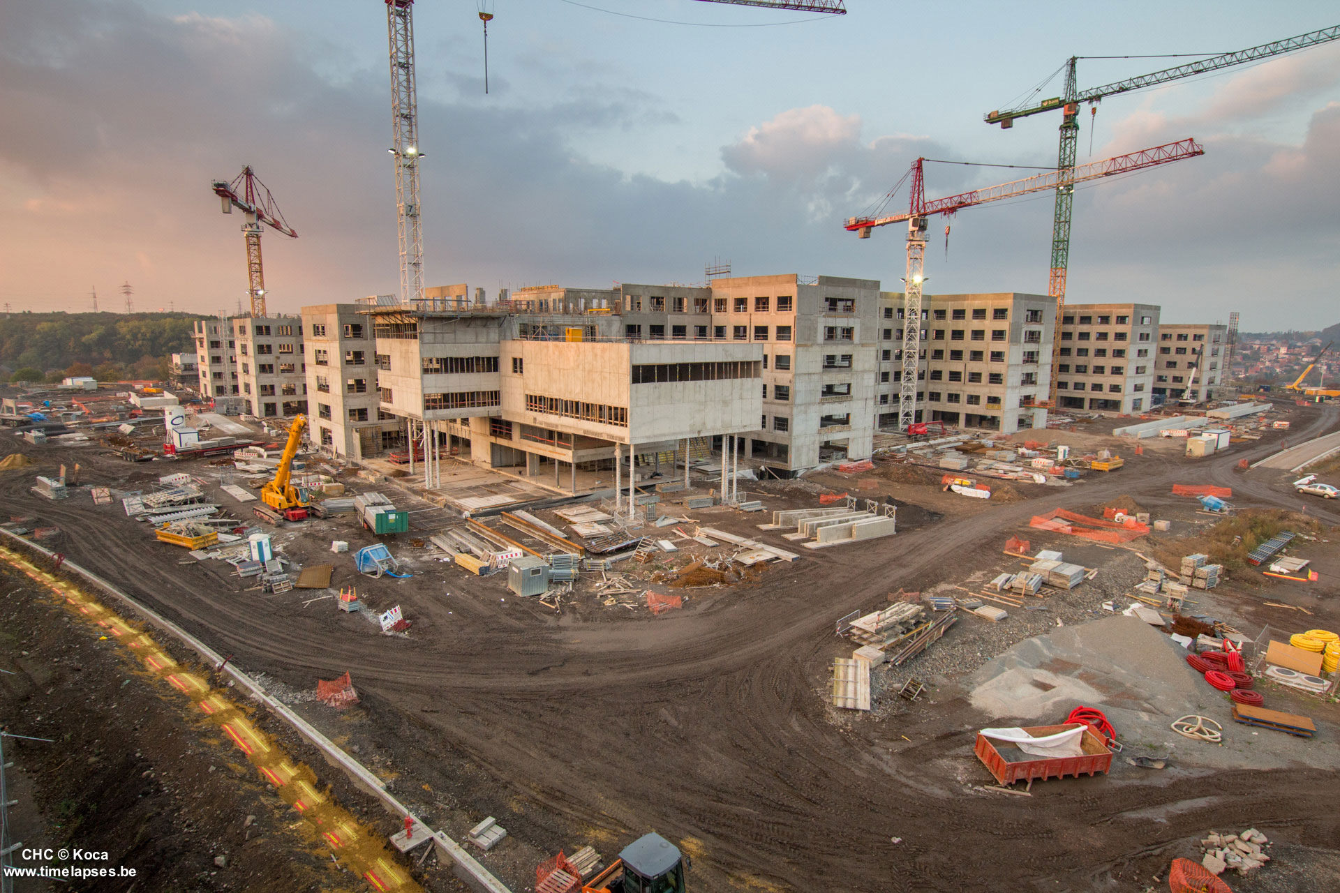 Le gros œuvre arrive bientôt à son terme, avec la pose des derniers hourdis, l’isolation des toitures et l’étanchéité de certaines zones intérieures du bâtiment. Certains parachèvements sont déjà en cours, comme le plafonnage des baies, la réalisation des chapes ou la pose des différentes canalisations…