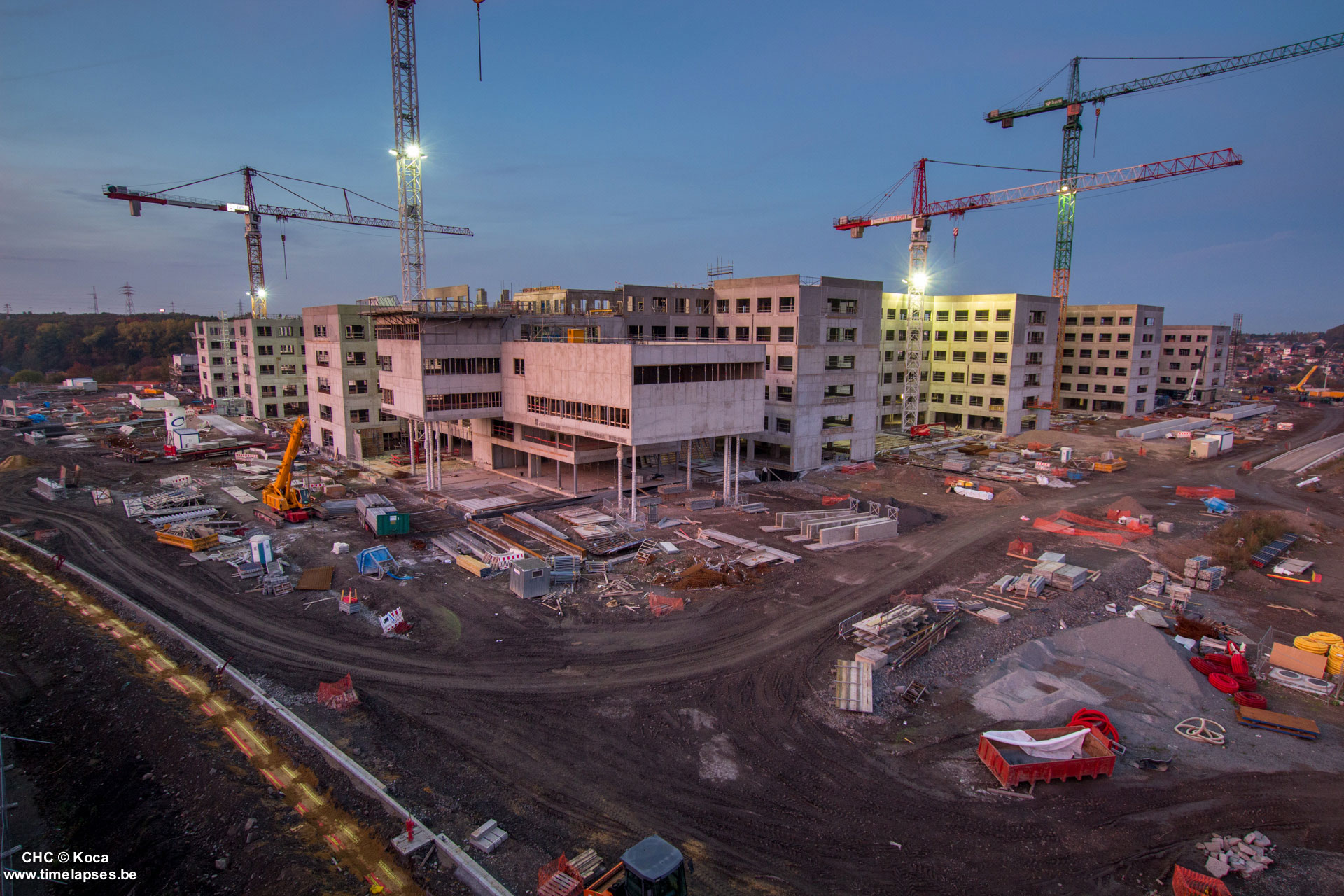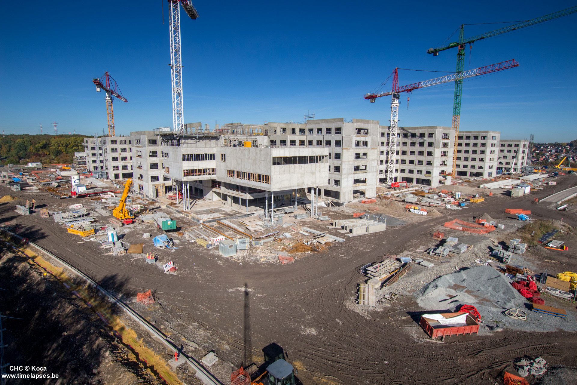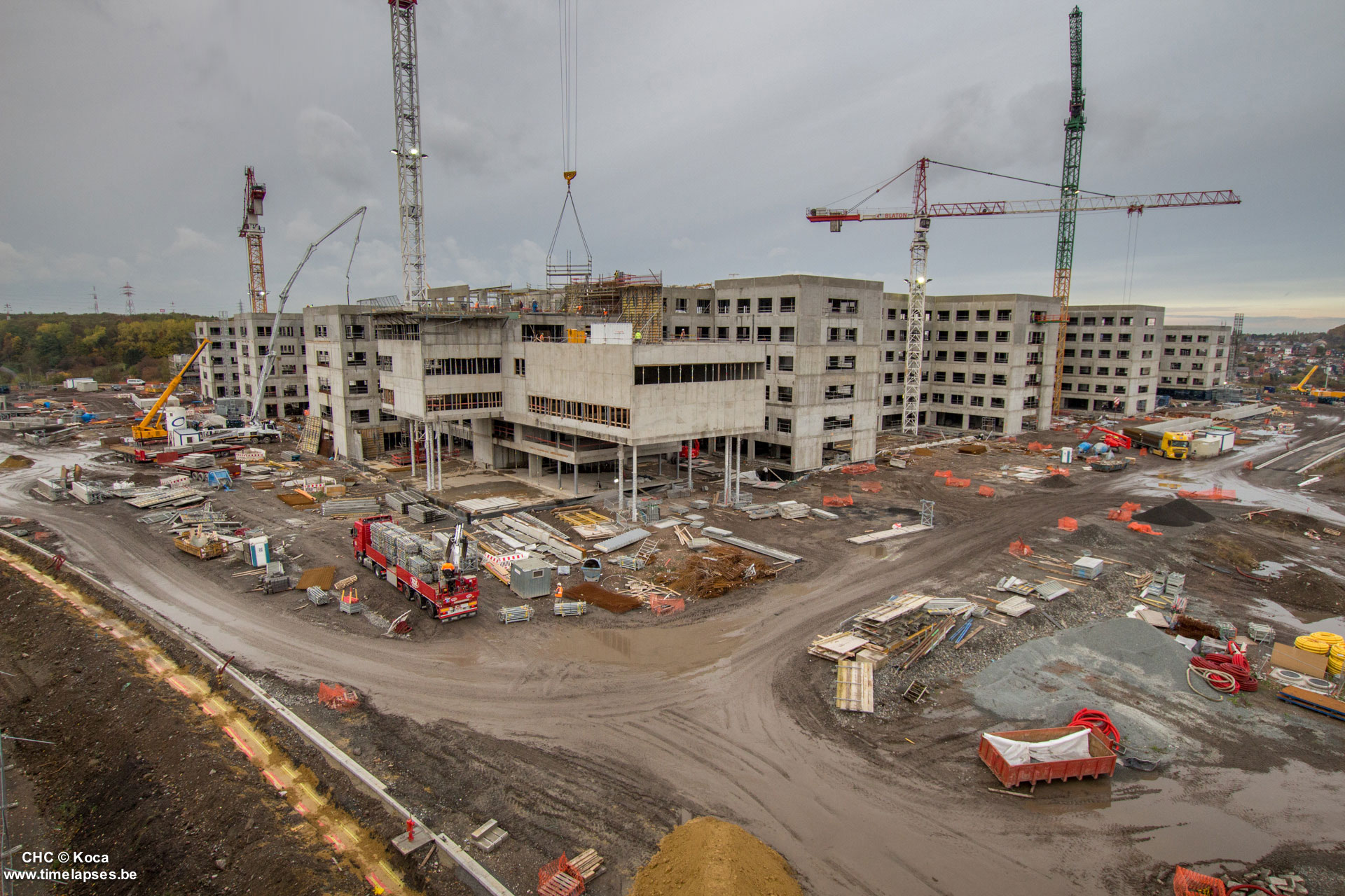 Le gros œuvre arrive bientôt à son terme, avec la pose des derniers hourdis, l’isolation des toitures et l’étanchéité de certaines zones intérieures du bâtiment. Certains parachèvements sont déjà en cours, comme le plafonnage des baies, la réalisation des chapes ou la pose des différentes canalisations…