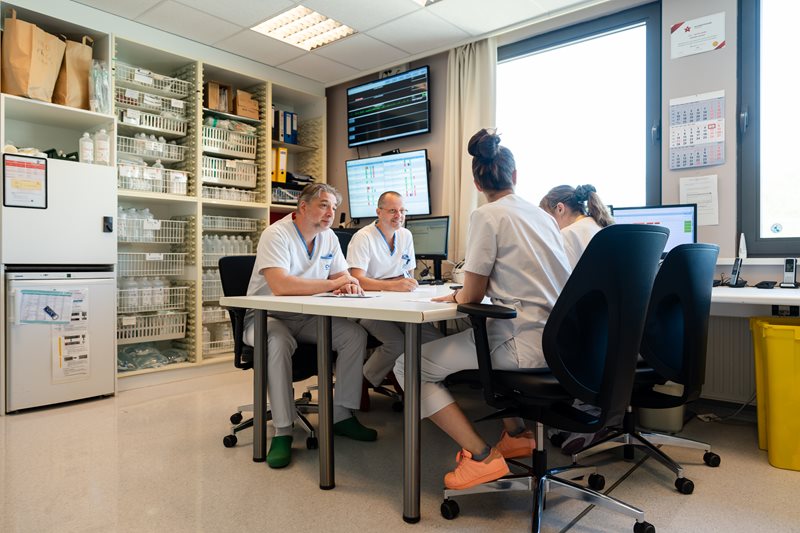 L'équipe soignante est secondée par une aide logistique. Notre équipe est motivée par l´idée de prodiguer des soins de qualité dans un climat chaleureux propre à un hôpital de proximité. Elle accorde une grande importance à l´aspect relationnel des soins et de l'accompagnement.